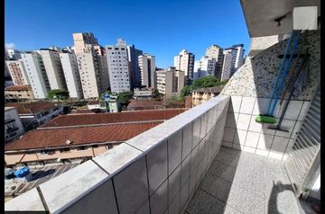 Bem localizado, sacada, andar alto, vista livre e ampla, iluminado, ventilado, elevadores, portaria, garagem coletiva com manobrista, 200 m da praia, 100 m de Santos, perto de tudo, apartamento de 1 quarto, bem amplo, prédio bem cuidado, apartamento de frente, em bom estado, pintura nova, sol da manhã, preço de oportunidade!!!