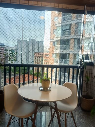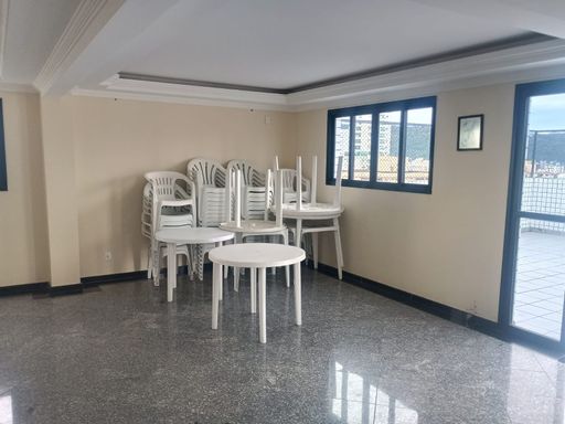 Excelente apartamento andar alto com varanda sendo : 2 quartos espaçosos claros e arejados com papel de parede e vista e com armário embutido e ar condicionado e uma sacada e no quarto principal temos 1 suíte espaçosa com armário e box em vidro ventilação externa todo funcional 1 sala para até 2 ambientes muito aconchegante com sanca em gesso iluminação independente com acesso a uma varanda gostosa toda fechada com vidro retrátil, 1 banheiro social espaçoso com armário, box em vidro bem claro e arejado e também ventilação externa todo funcional, 1 cozinha com armários embutidos espaçosa ,gás encanado, 1área de serviço ventilada clara,1banheiro completo de empregada com exaustão, 1 quarto para escritório ou um terceiro dormitório, 1 vaga de garagem demarcada do apartamento. Imóvel muito bem conservado, piso , hidráulica, elétrica está uma graça , venha conhecer !!! O prédio possui 2 elevadores novos, câmeras de segurança bicicletário, academia, salão de festa com churrasqueira muito grande na cobertura e portaria 24 horas todos os dias. Excelente localização ao lado da Av Ana Costa e próximo a bares, todos os restaurantes, shoppings, farmácia correio, mercados, hotéis, bancos, lojas e 3 quadras da praia. Não precisa usar carro para nada ! Venha se encantar com esse apartamento >>!!!