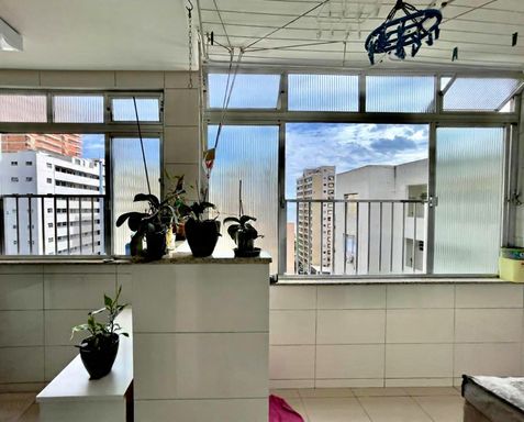 *Excelente apartamento no Gonzaga com vista lateral para o mar, andar alto, residencial com elevador, portaria e garagem, confira.*