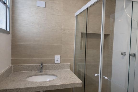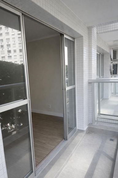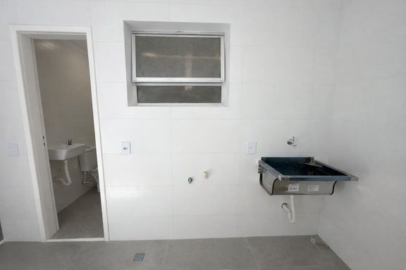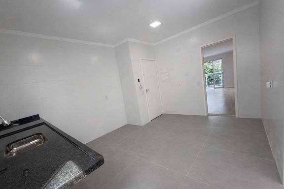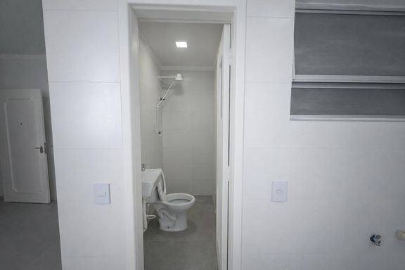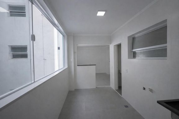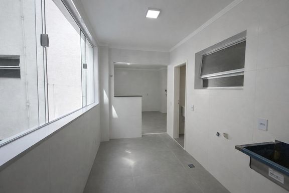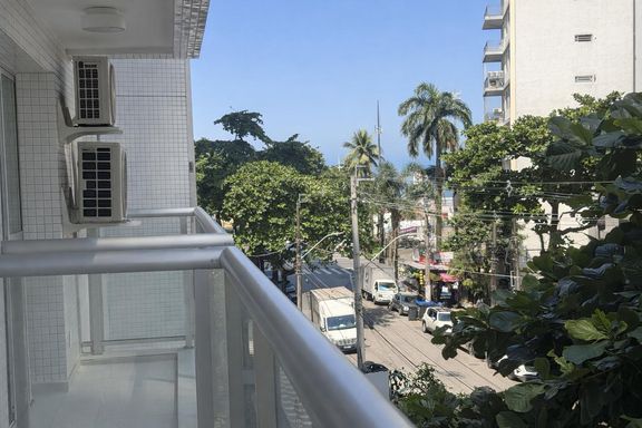 Ambientes amplos. Sala com sacada e vista para a praia. Área de serviço com dependência completa.