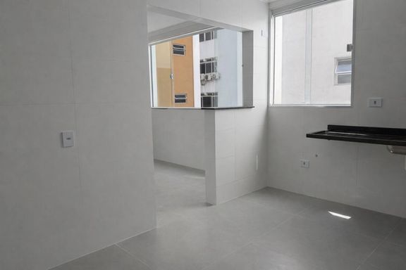 AMPLO apartamento - FRENTE - TOTALMENTE REFORMADO no BOQUEIRÃO em SANTOS com 3 QUARTOS (2 suítes), 2 vagas grandes privativas/demarcadas (cabem duas pick-ups grandes!) e possui depósito.