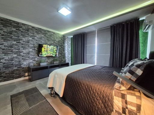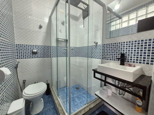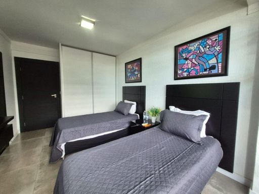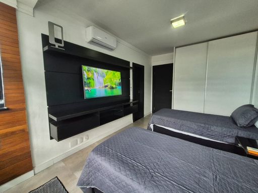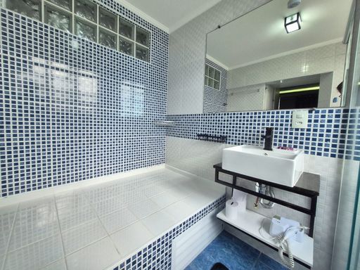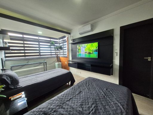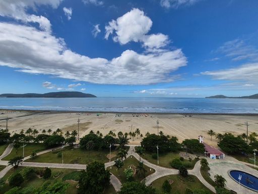Localizado no bairro do Gonzaga em Santos, na orla da praia, próximo a todo comercio local.