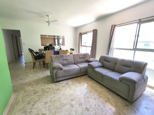 Apartamento amplo de 130 m2 de área útil de frente com varanda, sala 3 ambientes, 4 dormitórios , incluindo suíte e dependencia de empregada completa, cozinha planejada, área de serviço grande e completa , prédio com portaria 24 horas, elevador e duas vagas de garagem, uma delas garantida para o imóvel incluindo carro e moto e outra garantida para o visitante ! Fica localizado na quadra da praia na Rua José Bonifácio, esquina do Supermercado Sonda. Uma quadra do shopping Brisamar. Próximo ao centro de São Vicente. Documentação ok
