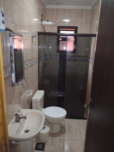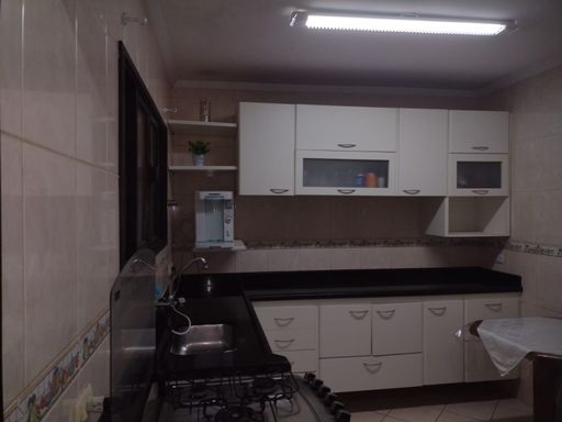 - Sobrado - Parte térrea: Garagem para carro e moto privativa com portão automático, sala, cozinha, lavabo e área de serviços.