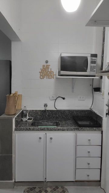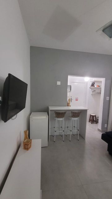 Excelente Sala living totalmente reformada com vista panorâmica do mar sendo 1 quarto bem claro e arejado ,sol da manha com cama e armário 1 sala também muito clara e ventilada frente a praia com uma vista lindíssima do mar uma cozinha integrada a sala toda equipada com armários e panelas gás encanado ,1 banheiro espaçoso com box em vidro e juto uma pequena área de serviço 1vaga de garagem coletiva insuficiente. Imóvel todo reformado do chão ao teto janelas novas impecável. Excelente localização próximo a bares, restaurantes, praias mercados, padaria, farmácia igreja etc... Venha visitar e comprar esse maravilhoso imóvel.