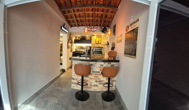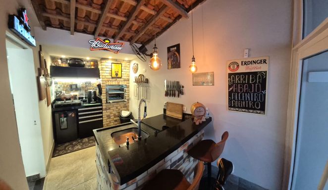 Espaço Gourmet: Churrasqueira conjugada com a cozinha e área de serviço com lava e seca da Samsung, cervejeira e bancada de apoio integrados à área externa com chopeira e no quintal cobertura retrátil, ideal para momentos de lazer com amigos e familiares.